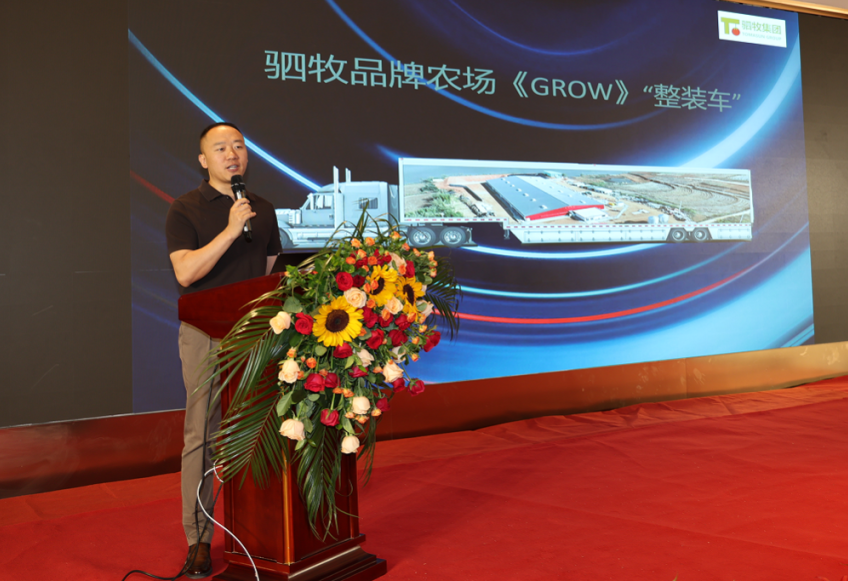 上海驷牧集团董事长张世杰介绍兰考GROW-VB品牌家庭农场项目情况。